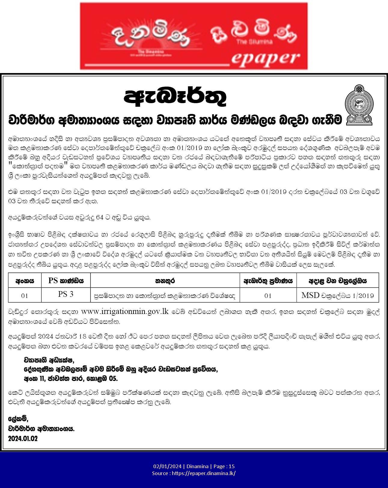 Procurement & Contract management Specialist - Ministry of Irrigation