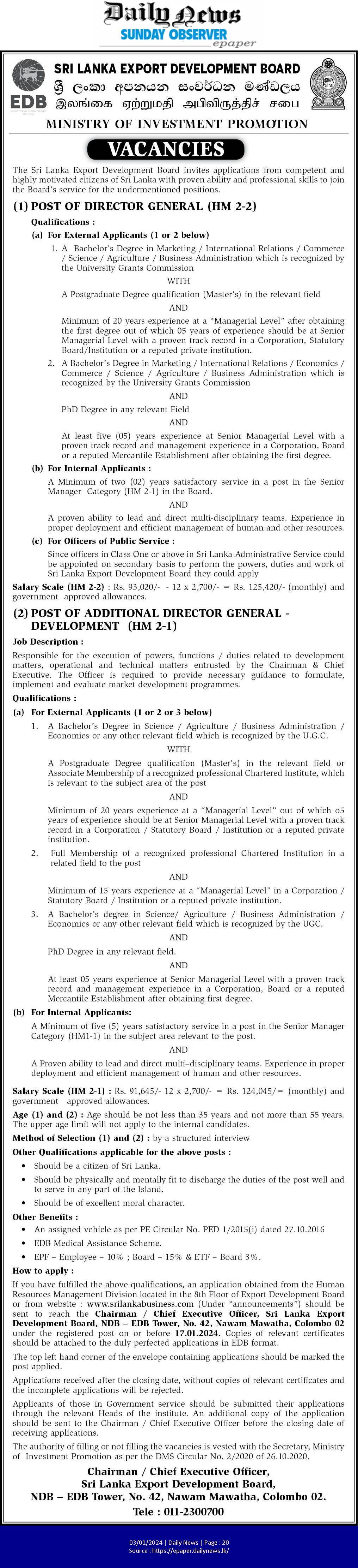 Director General, Additional Director General - Sri Lanka Export Development Board
