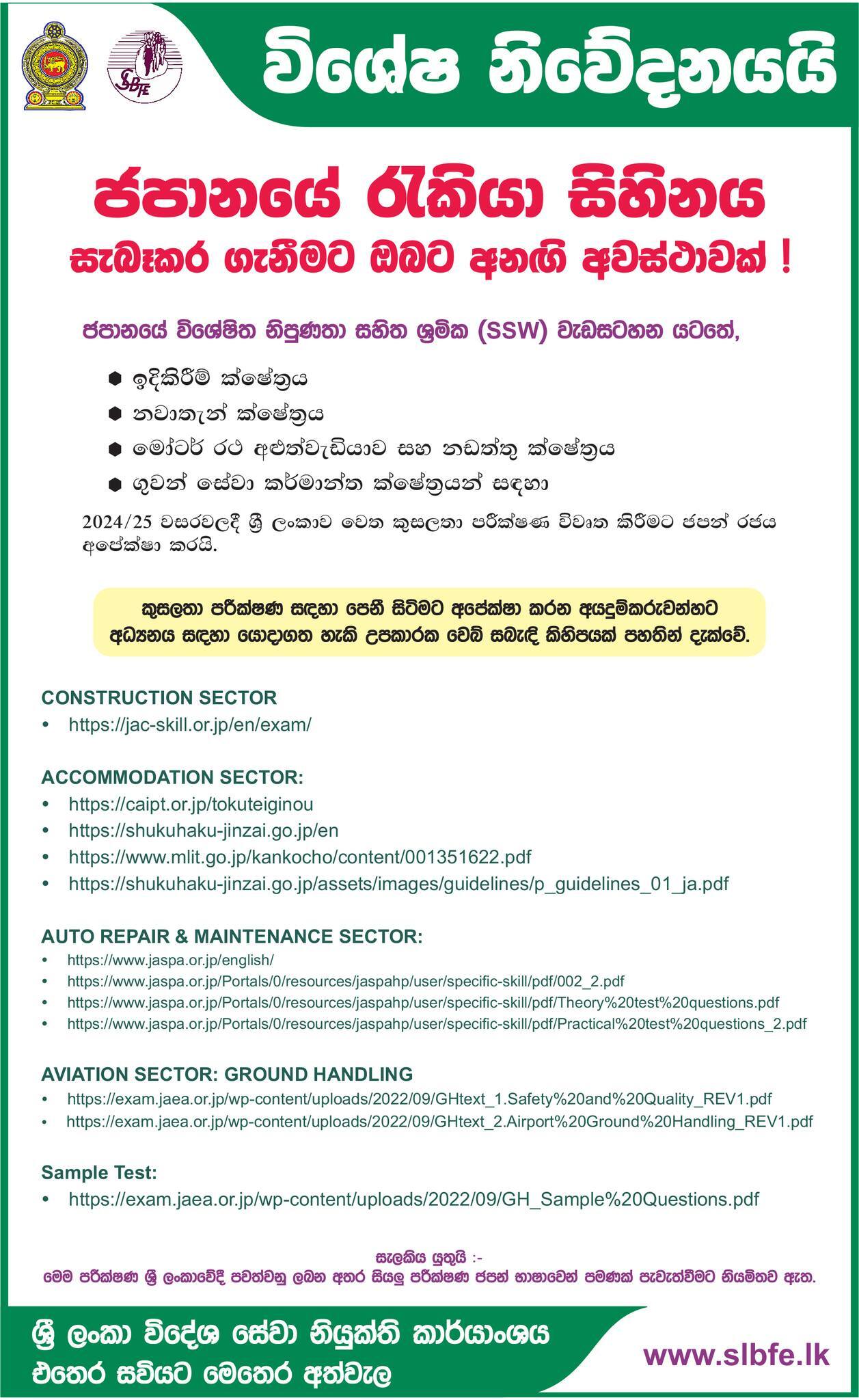 Japan Job Vacancy - Sri Lanka Bureau of Foreign Employment