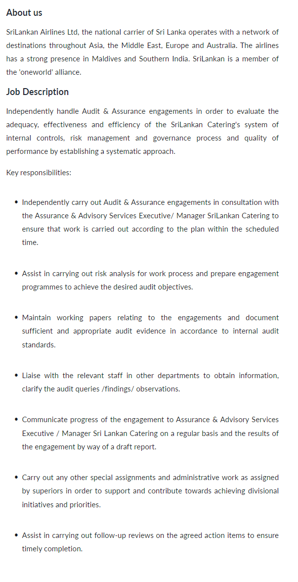 Assurance and Advisory Services Supervisor - SriLankan Airlines