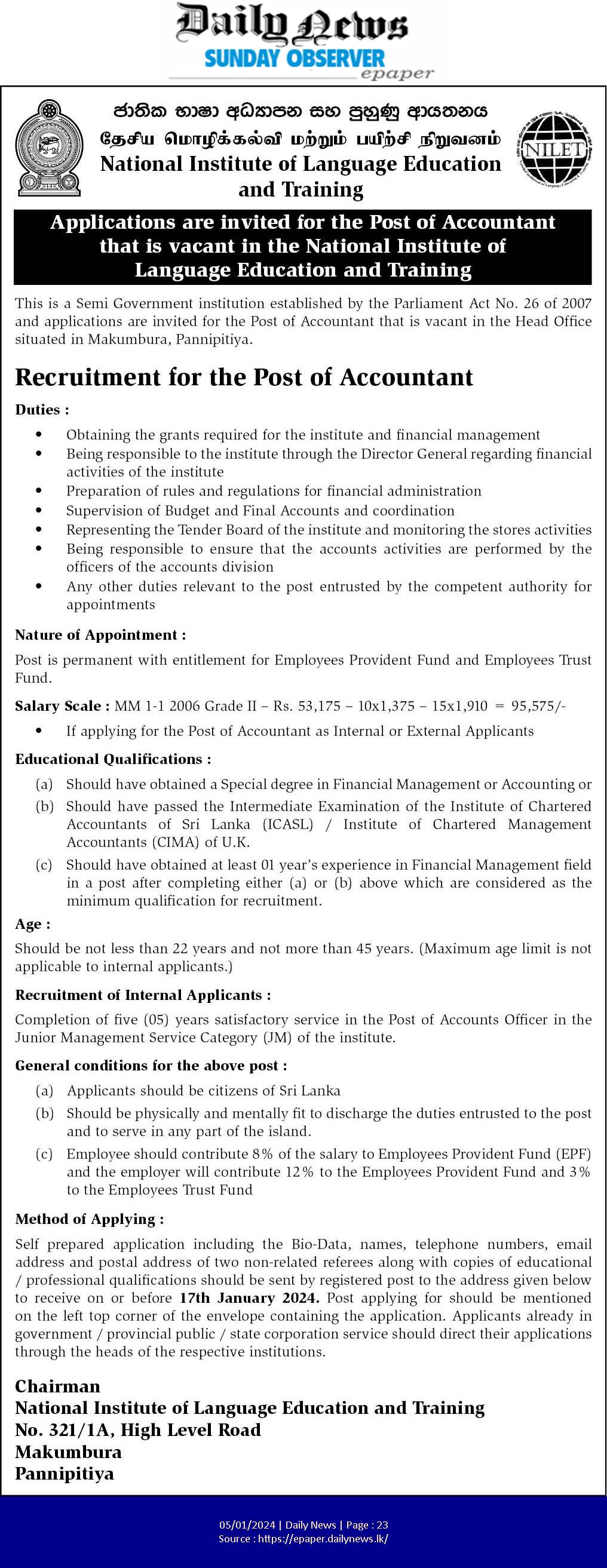 Accountant - National Institute of Language Education and Training