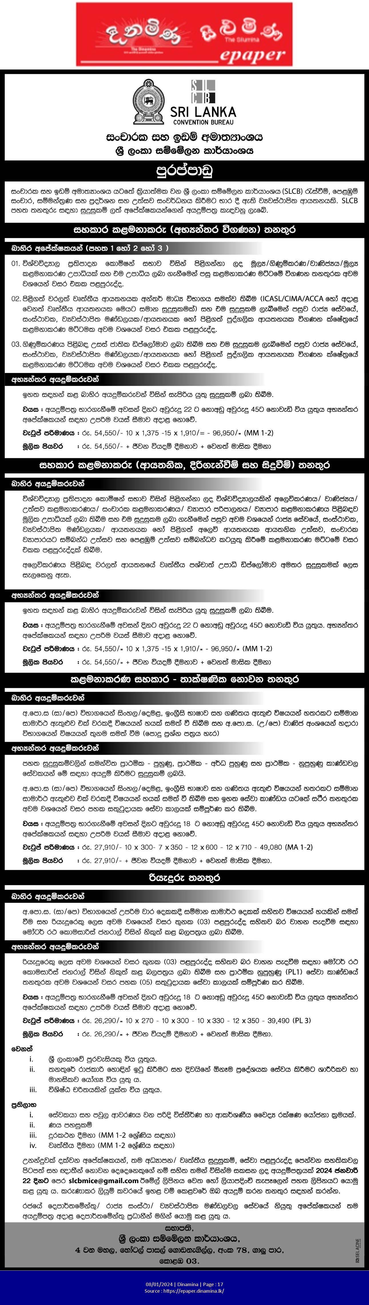 Assistant Manager, Management Assistant, Driver - Sri Lanka Convention Bureau