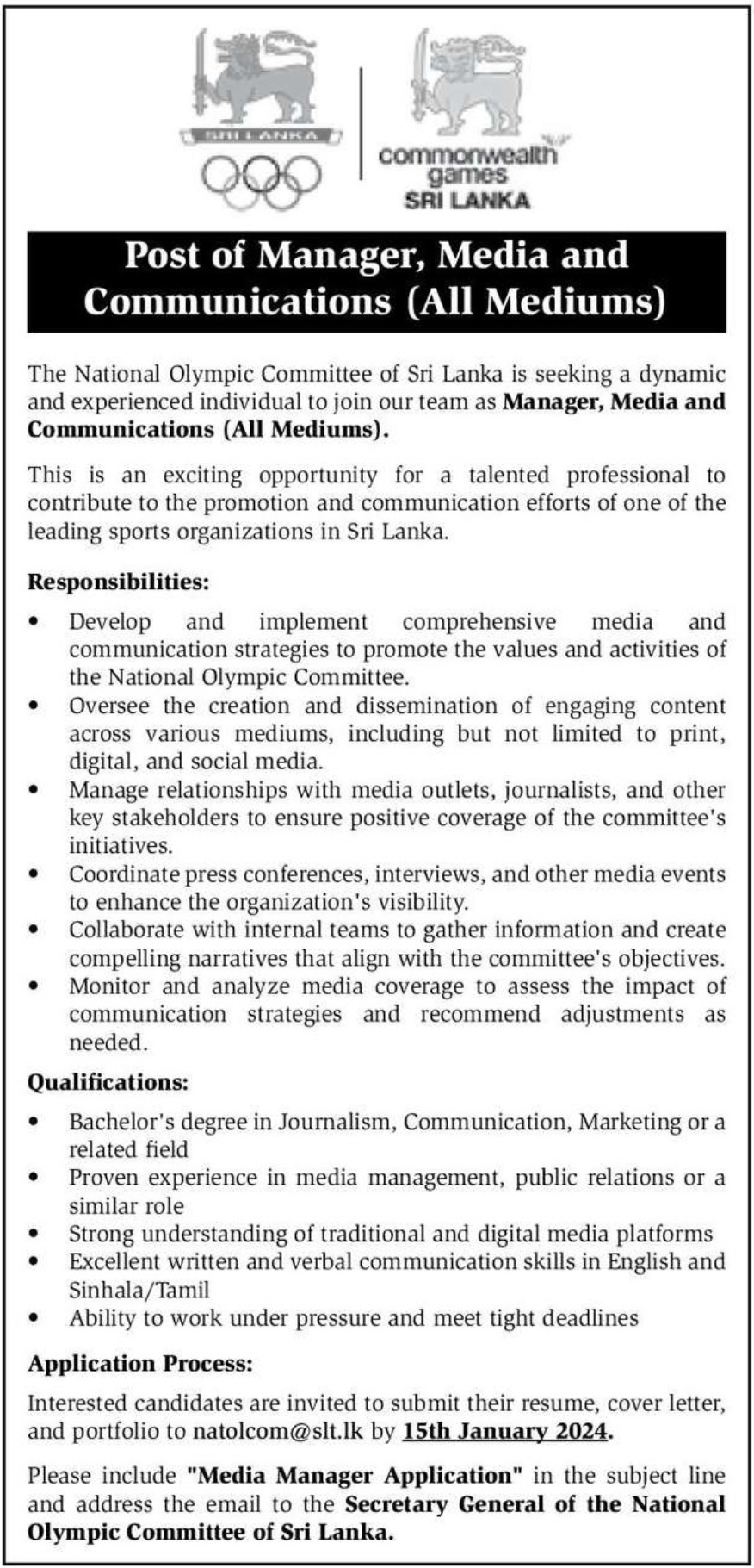 Manager - National Olympic Committee of Sri Lanka