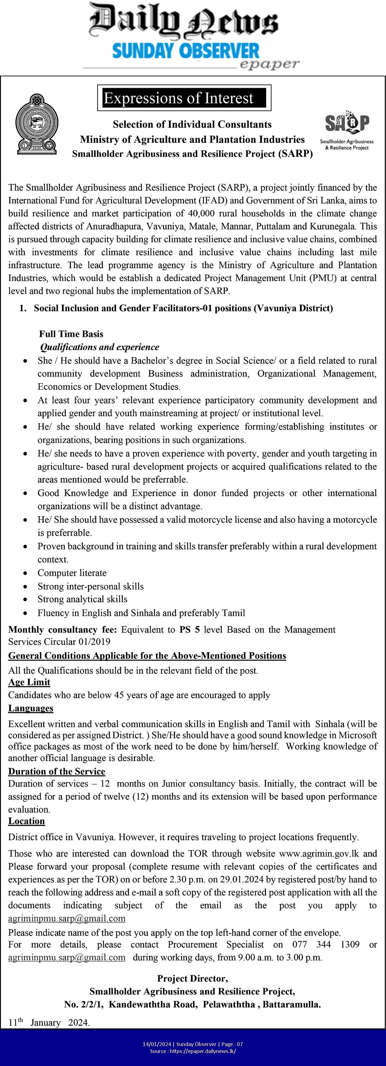 Social Inclusion and Gender Facilitators - Ministry of Agriculture