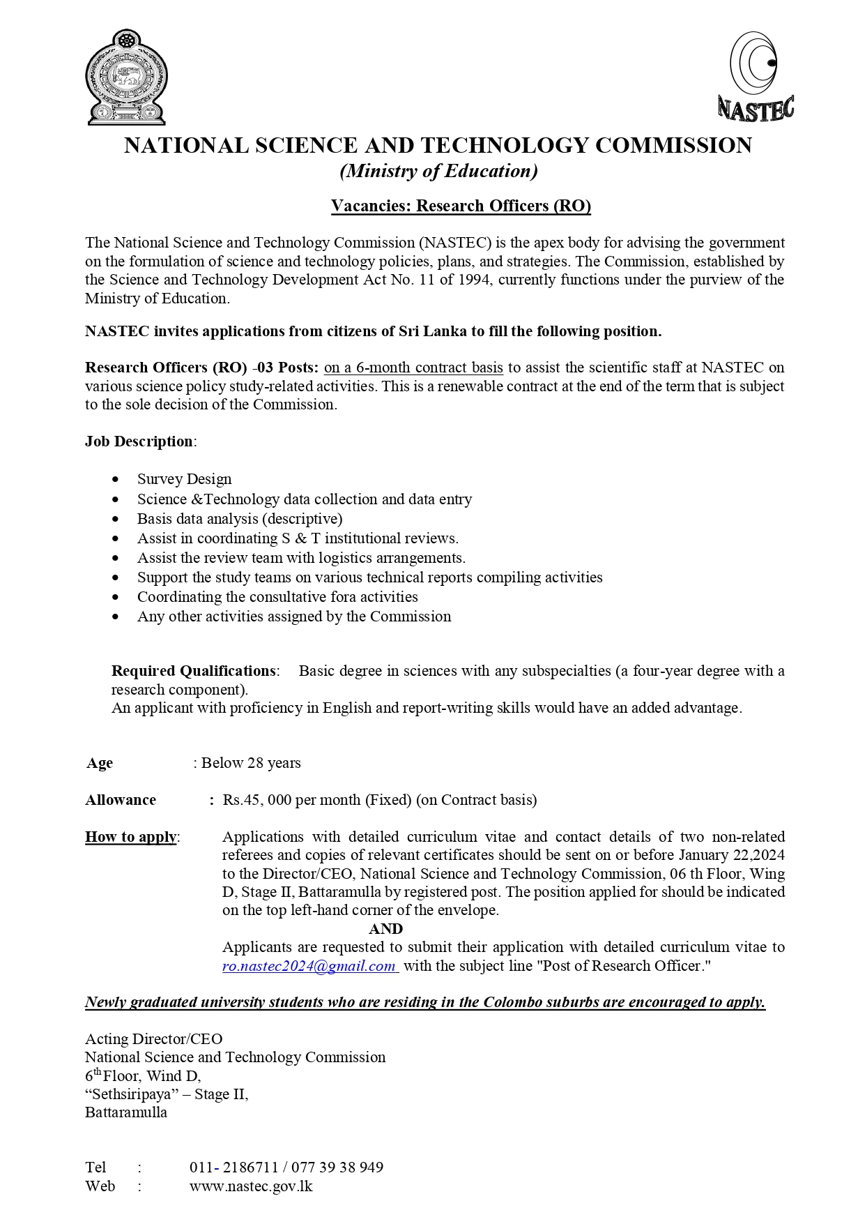 Research Officer - National Science and Technology Commission
