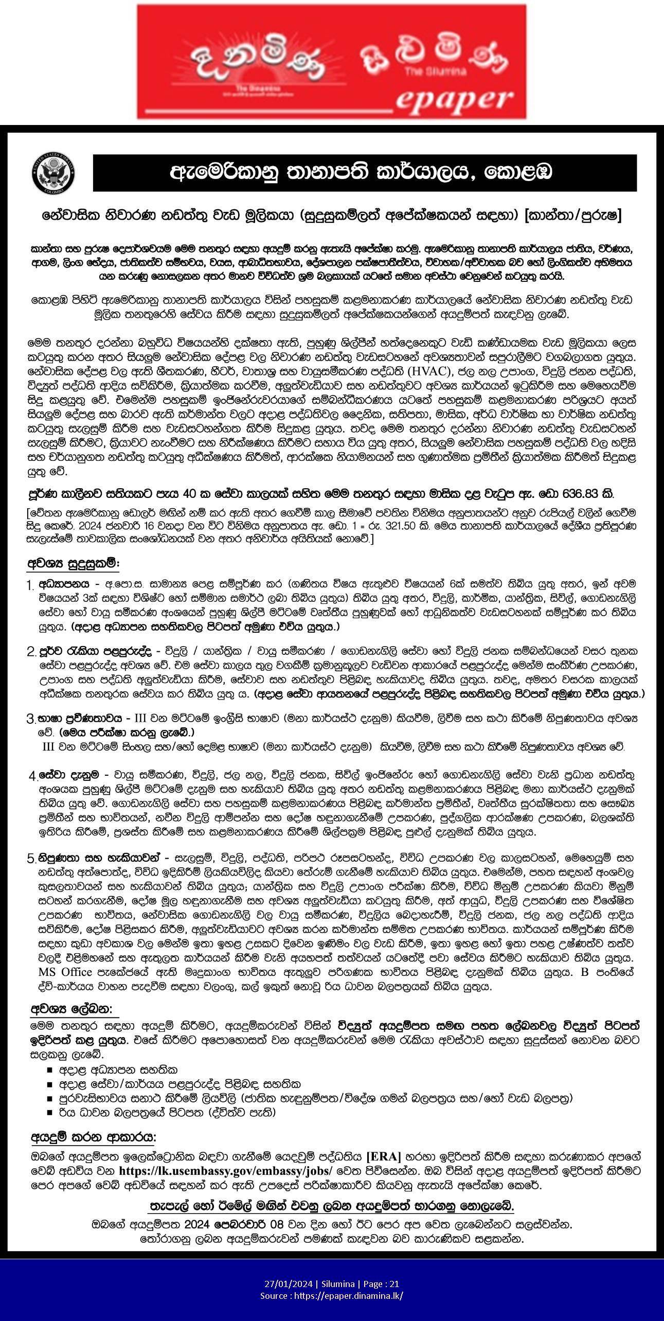 Maintainer - American Embassy