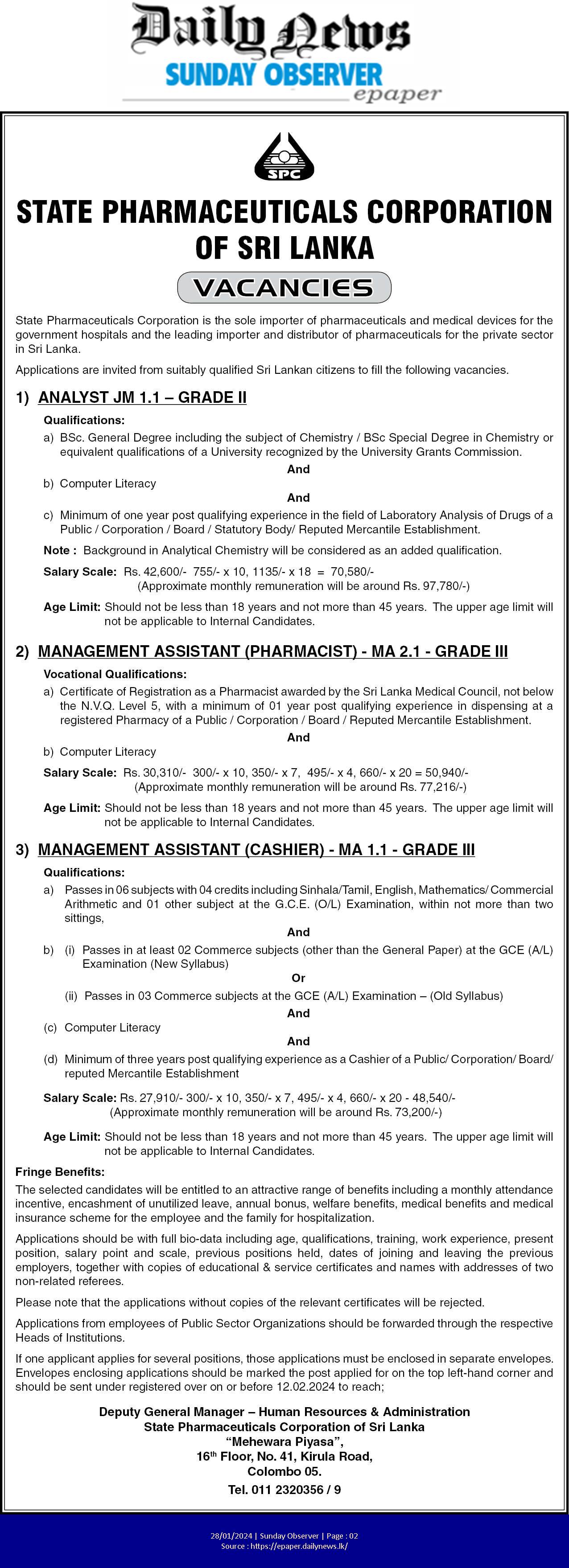 Analysist, Management Assistant - State Pharmaceuticals Corporation of Sri Lanka