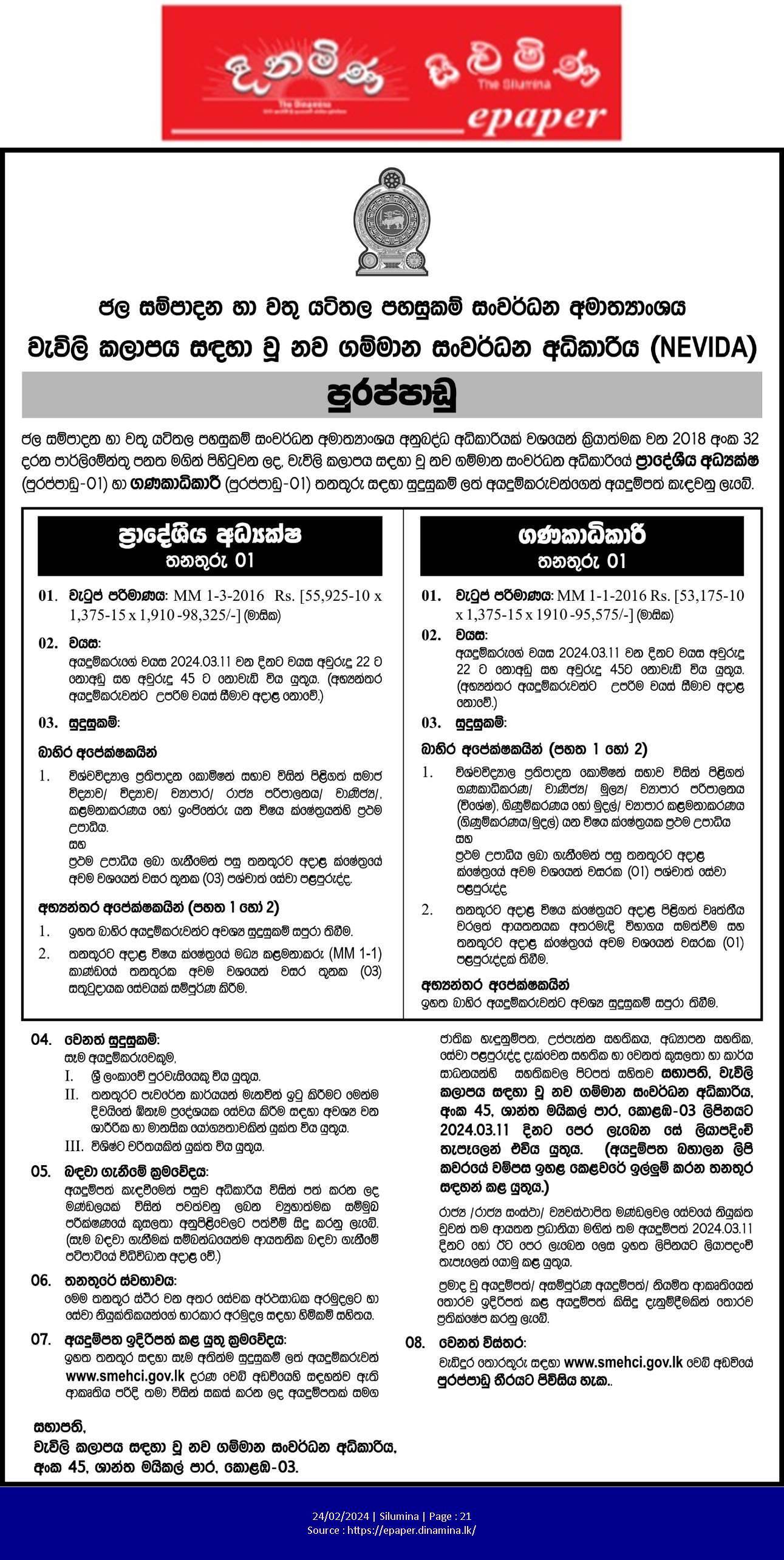 Regional Director, Accountant - Ministry of Water Supply and Estate Infrastructure Development