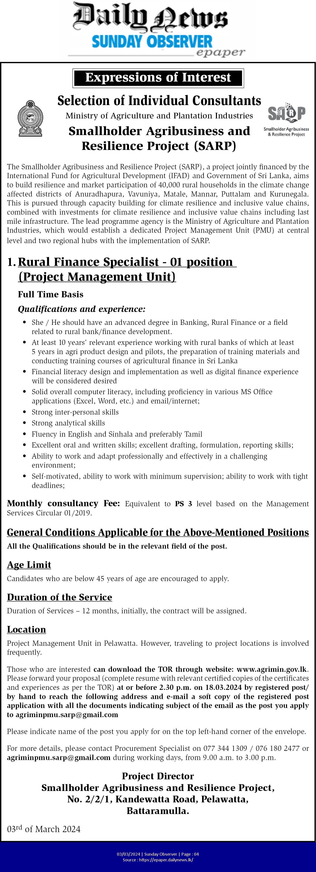 Finance Specialist - Ministry of Agriculture