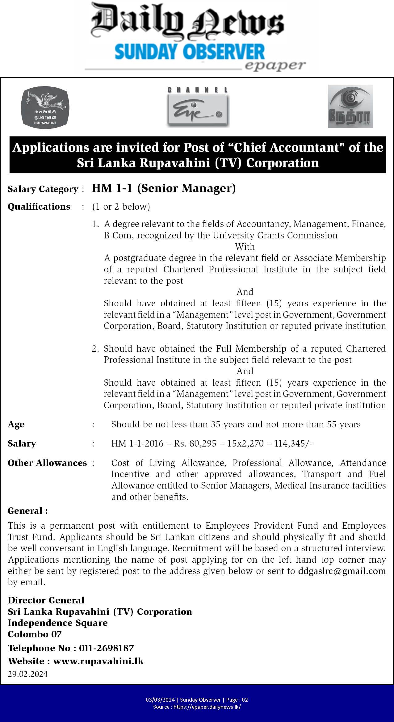 Chief Accountant - Sri Lanka Rupavahini Corporation
