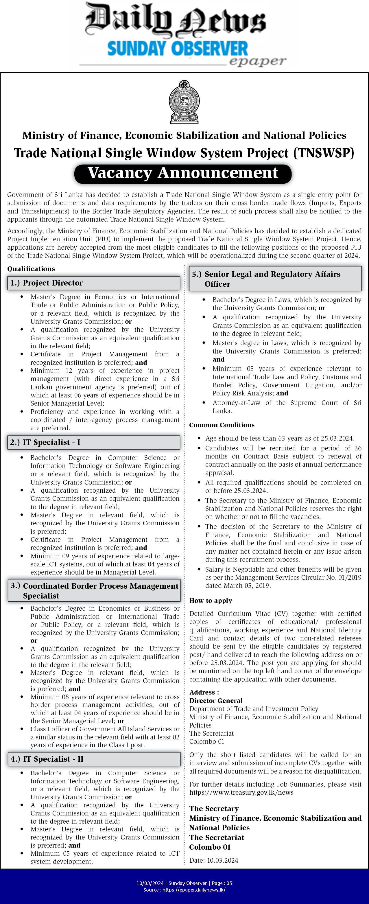 Project Director, IT Specialist - Ministry of Finance