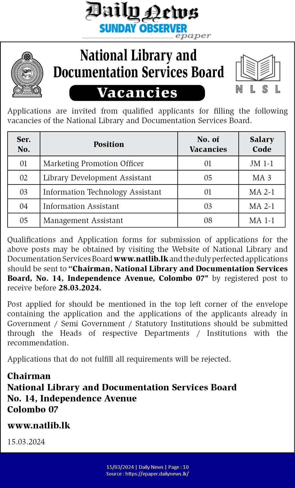 Marketing Promotion Officer, Library Development Assistant - National Library and Documentation Services Board