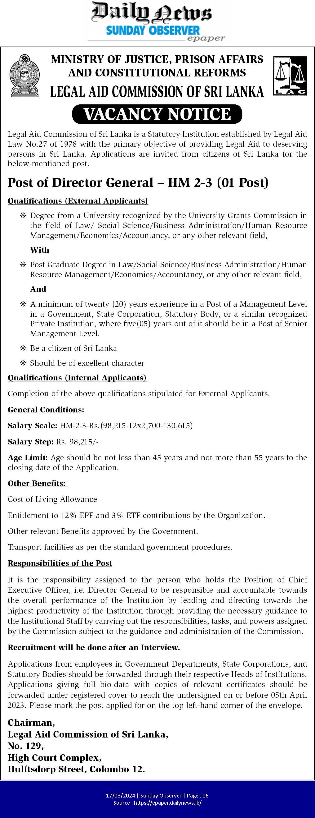 Director General - Ministry of Justice