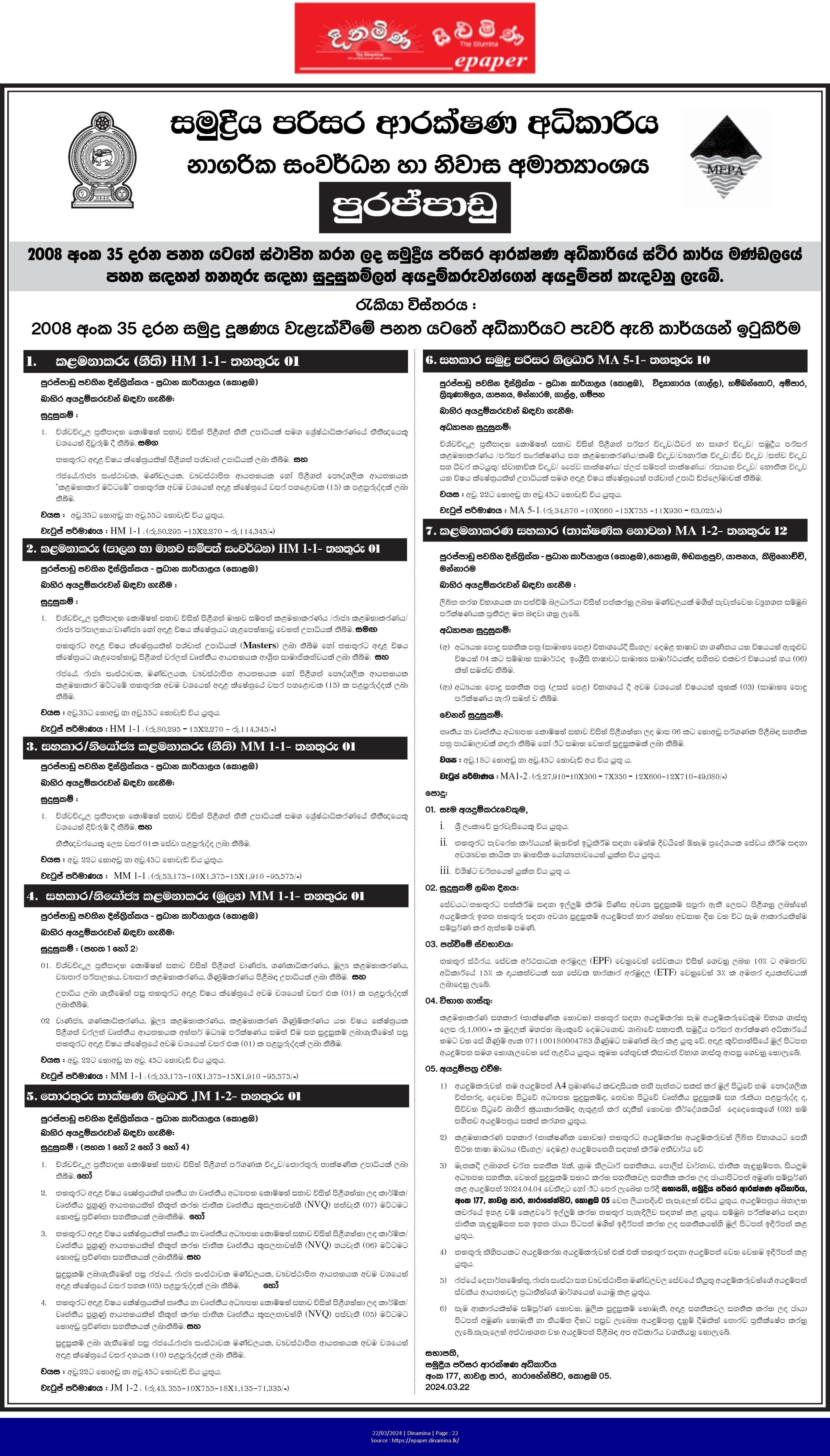 Manager, Deputy Manager, Management Assistant, Assistant Marine Environment Officer - Marine Environment Protection Authority