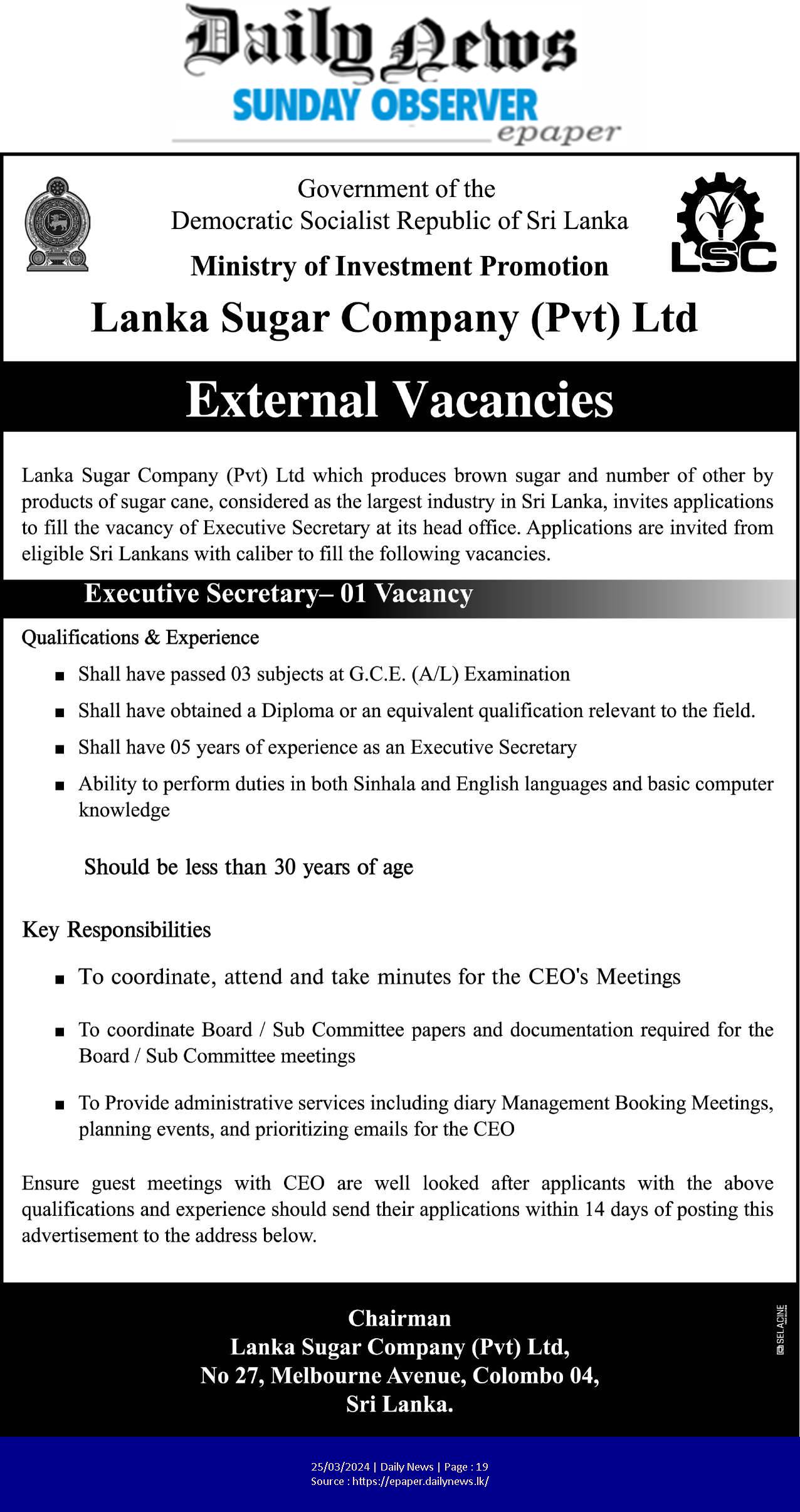 Executive Secretary - Lanka Sugar Company (Pvt) Ltd
