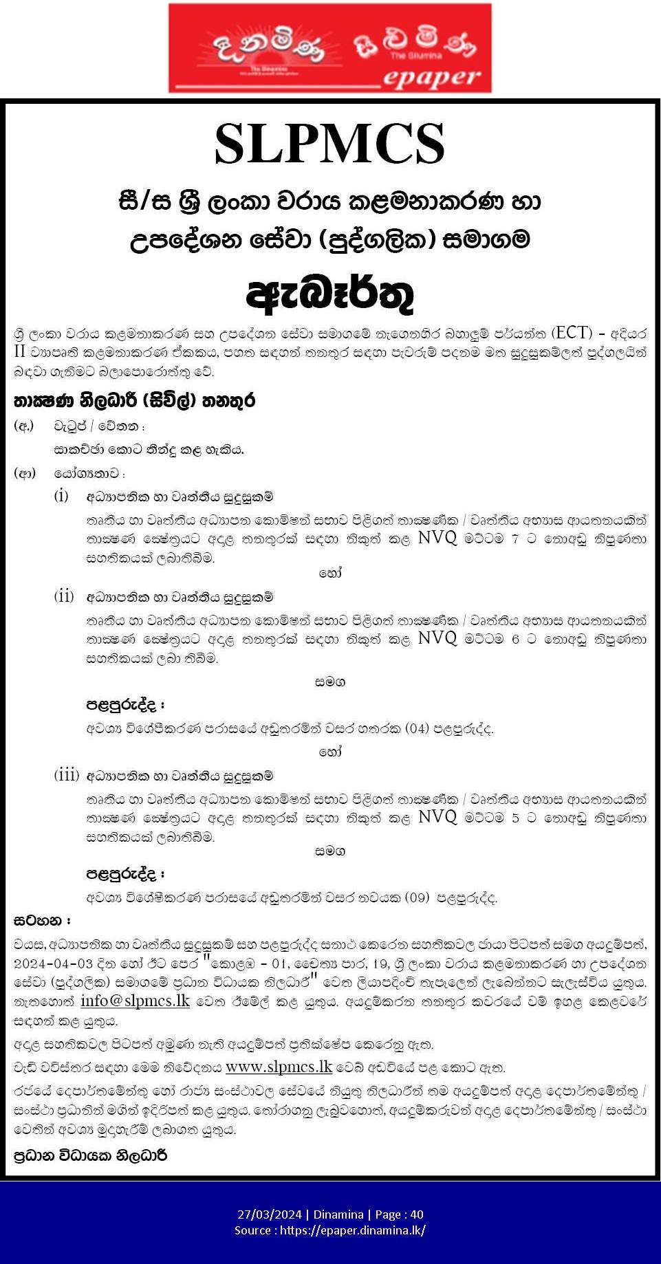 Technical Officer - Sri Lanka Port Management & Consultancy Services (PVT) Ltd
