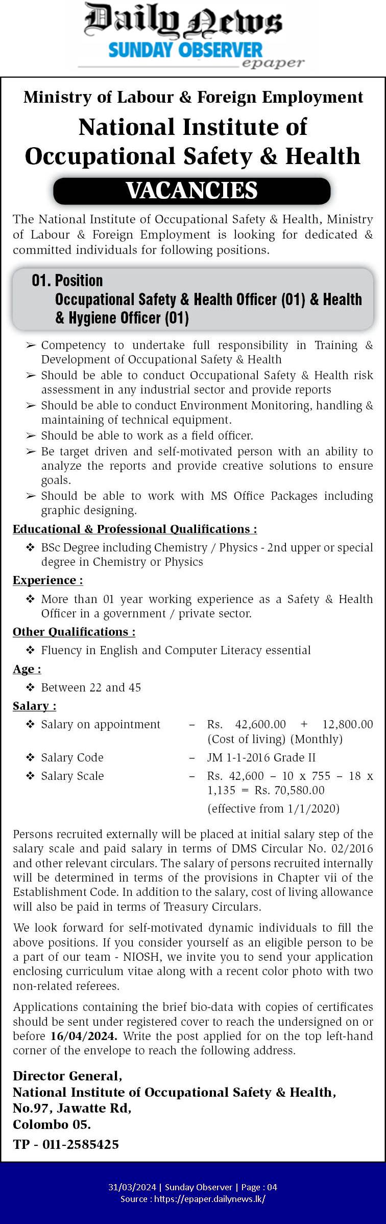 Occupational Safety and Health Officer - National Institute of Occupational Safety and Health