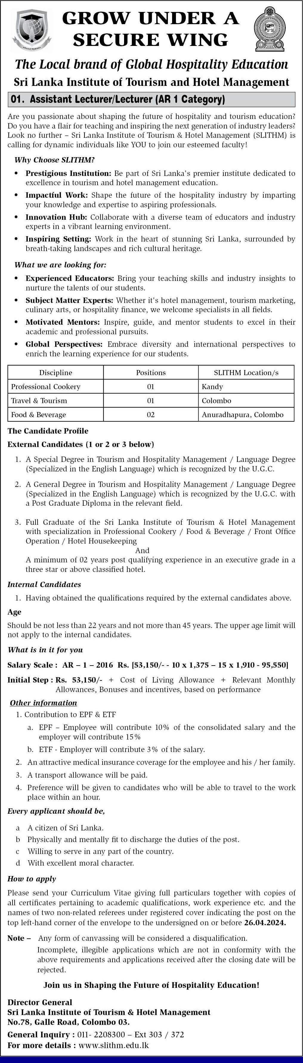 Assistant Lecturer, Lecturer - Sri Lanka Institute of Tourism & Hotel Management