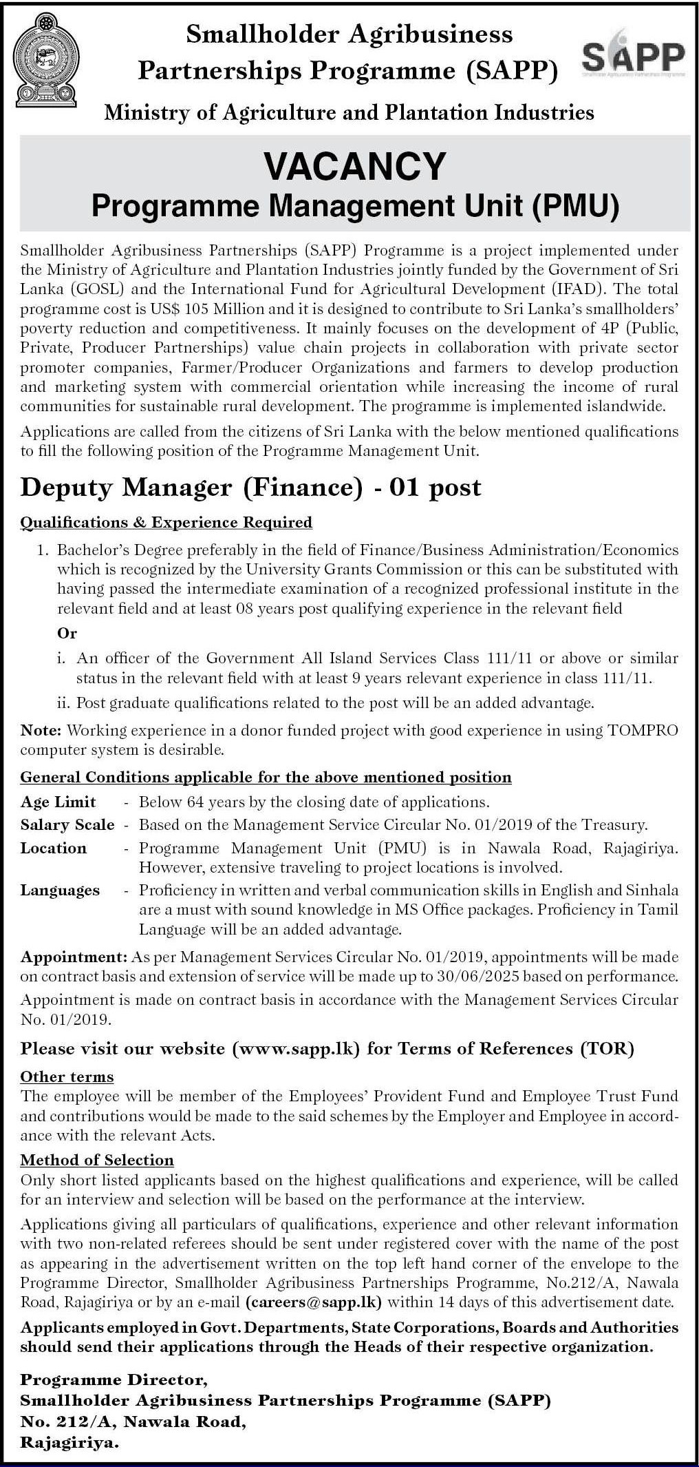 Deputy Manager - Ministry of Agriculture