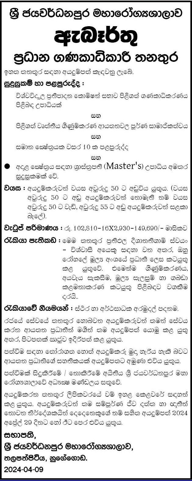 Chief Accountant - Sri Jayewardenepura General Hospital