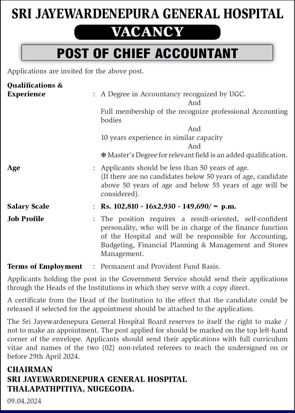 Chief Accountant - Sri Jayewardenepura General Hospital