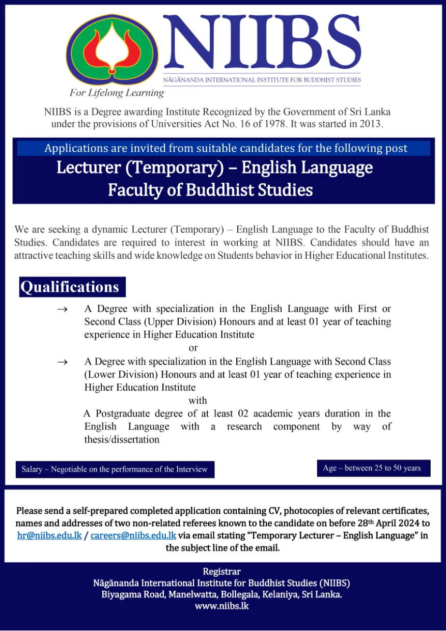Lecturer - Nagananda International Institute for Buddhist Studies