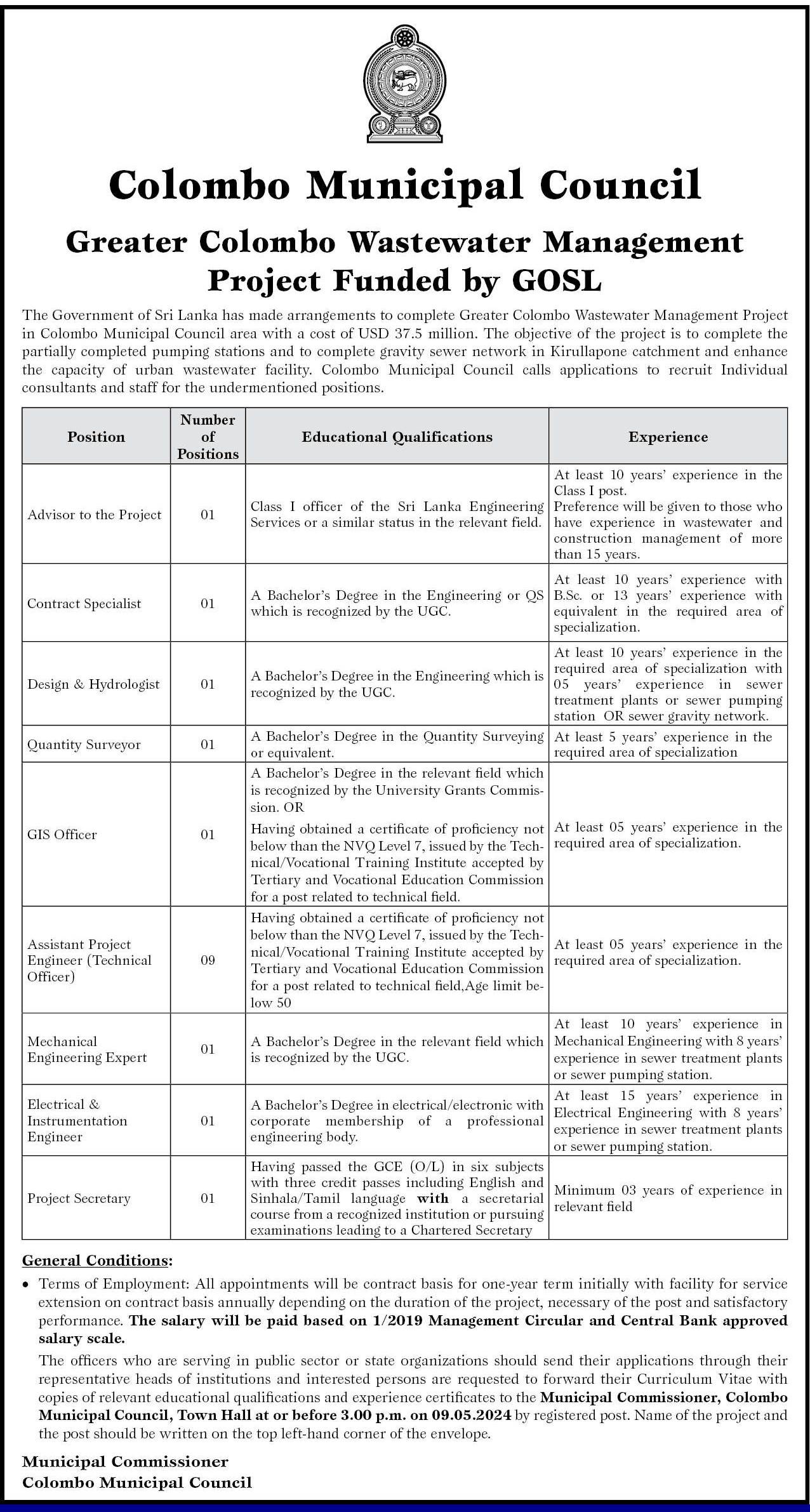 Project Advisor, Contract Specialist, Quantity Surveyor - Colombo Municipal Council