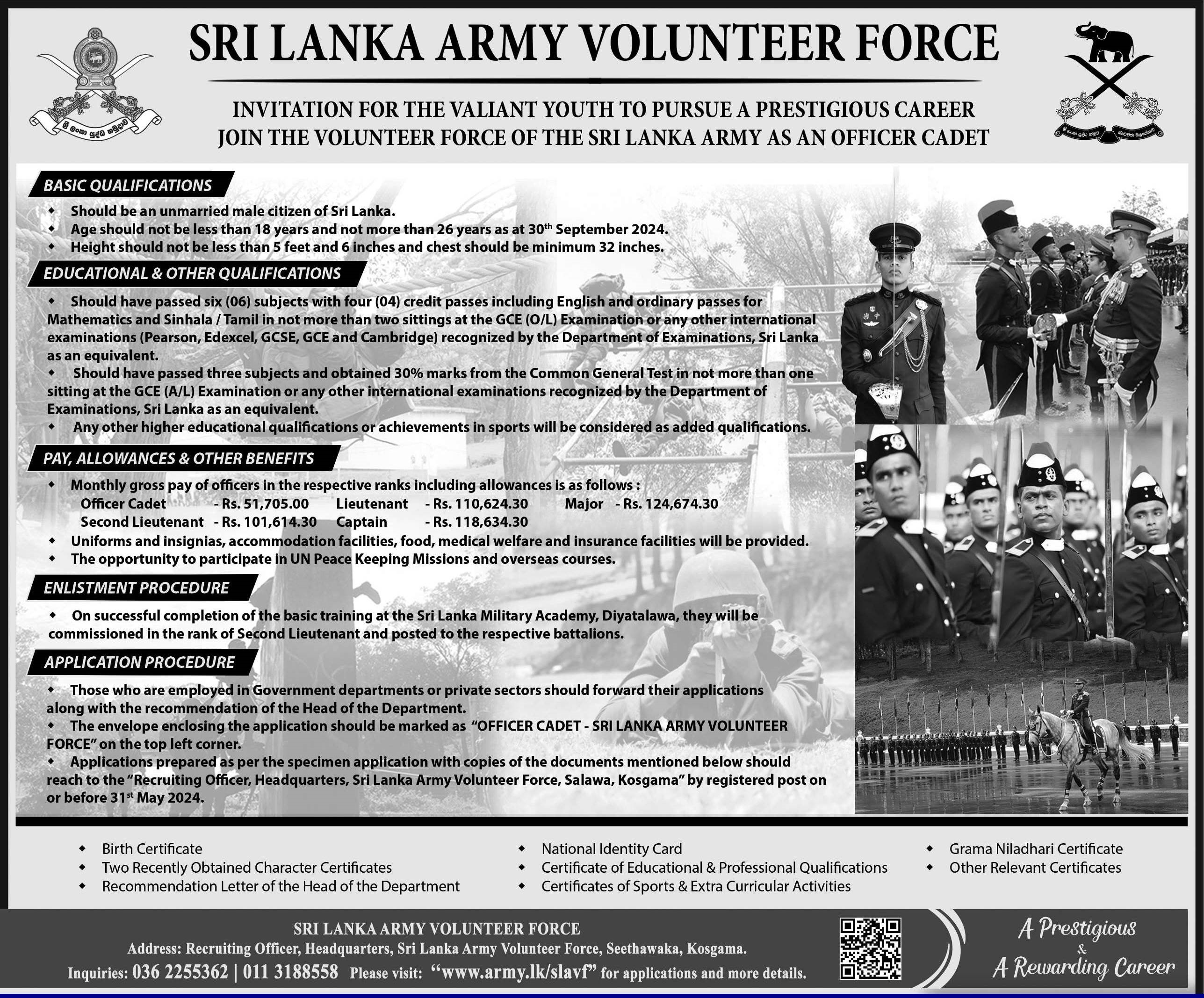 Cadet Officer, Second Lieutenant, Lieutenant - Sri Lanka Army Volunteer Force