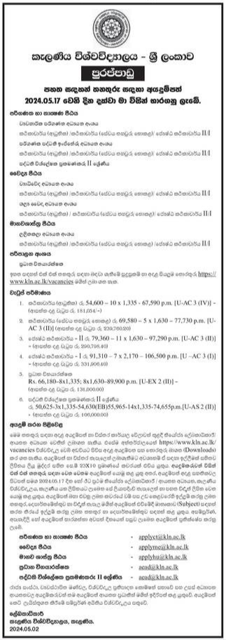 Lecturer, Chief Marshal, Programmer cum Systems Analyst - University of Kelaniya