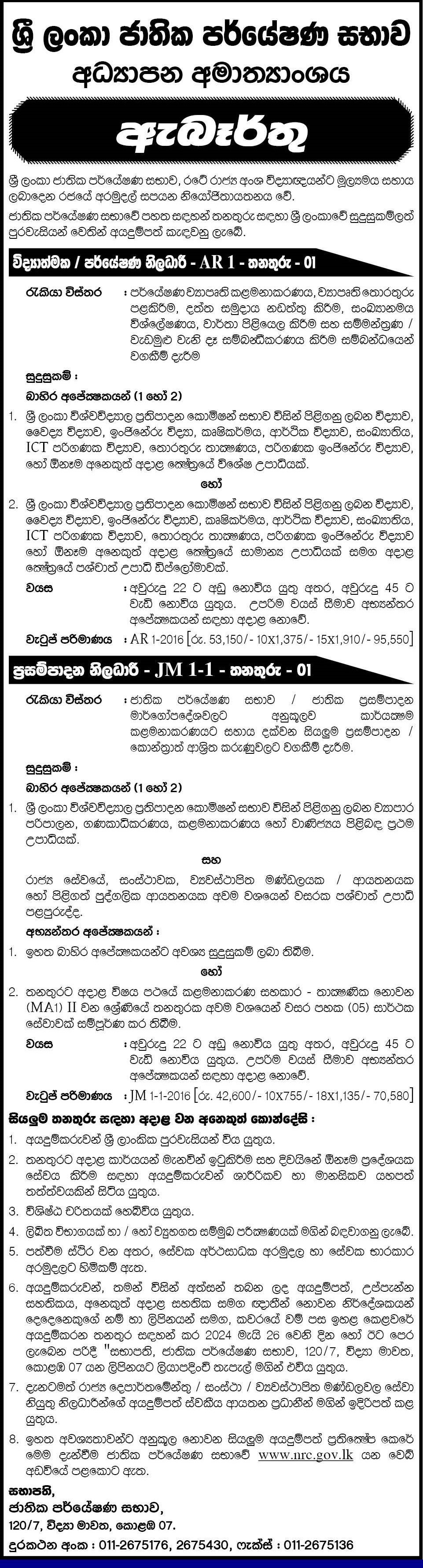 Research Officer, Procurement Officer - National Research Council of Sri Lanka