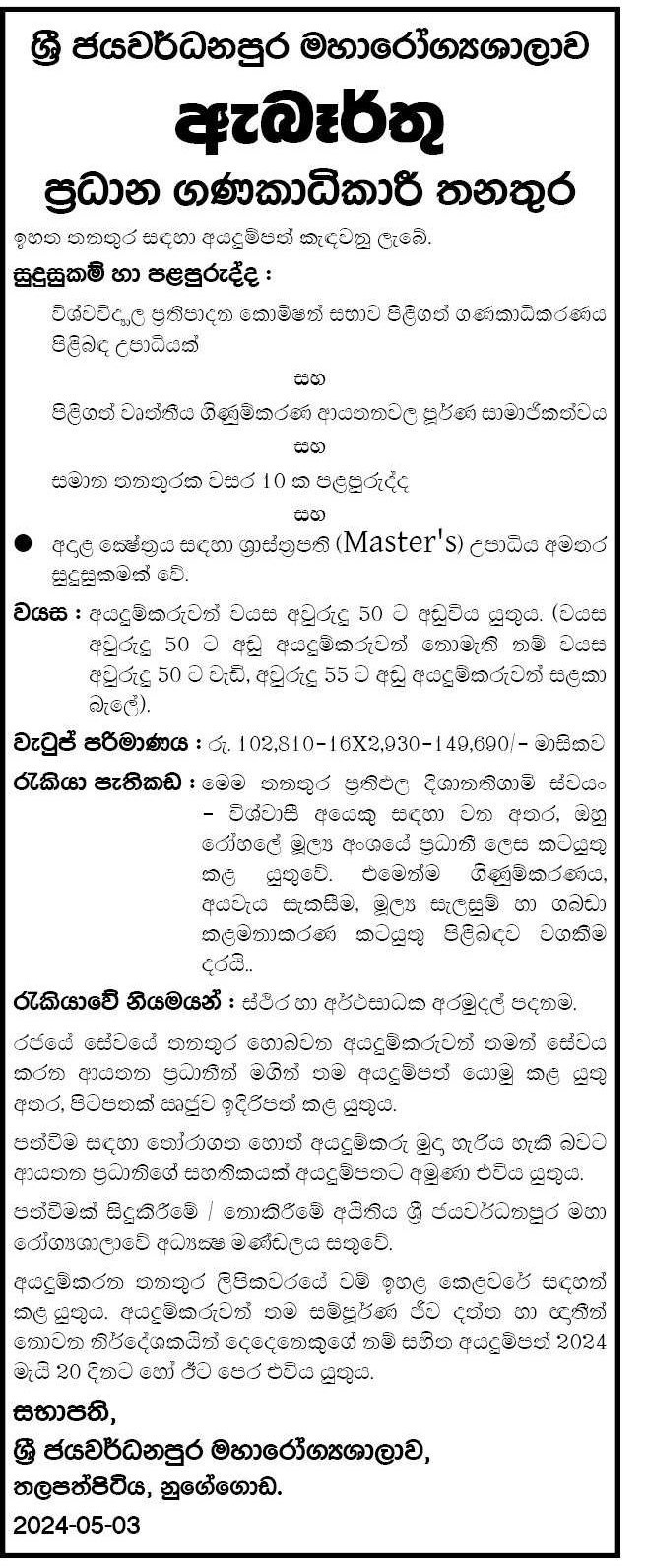 Chief Accountant - Sri Jayewardenepura General Hospital