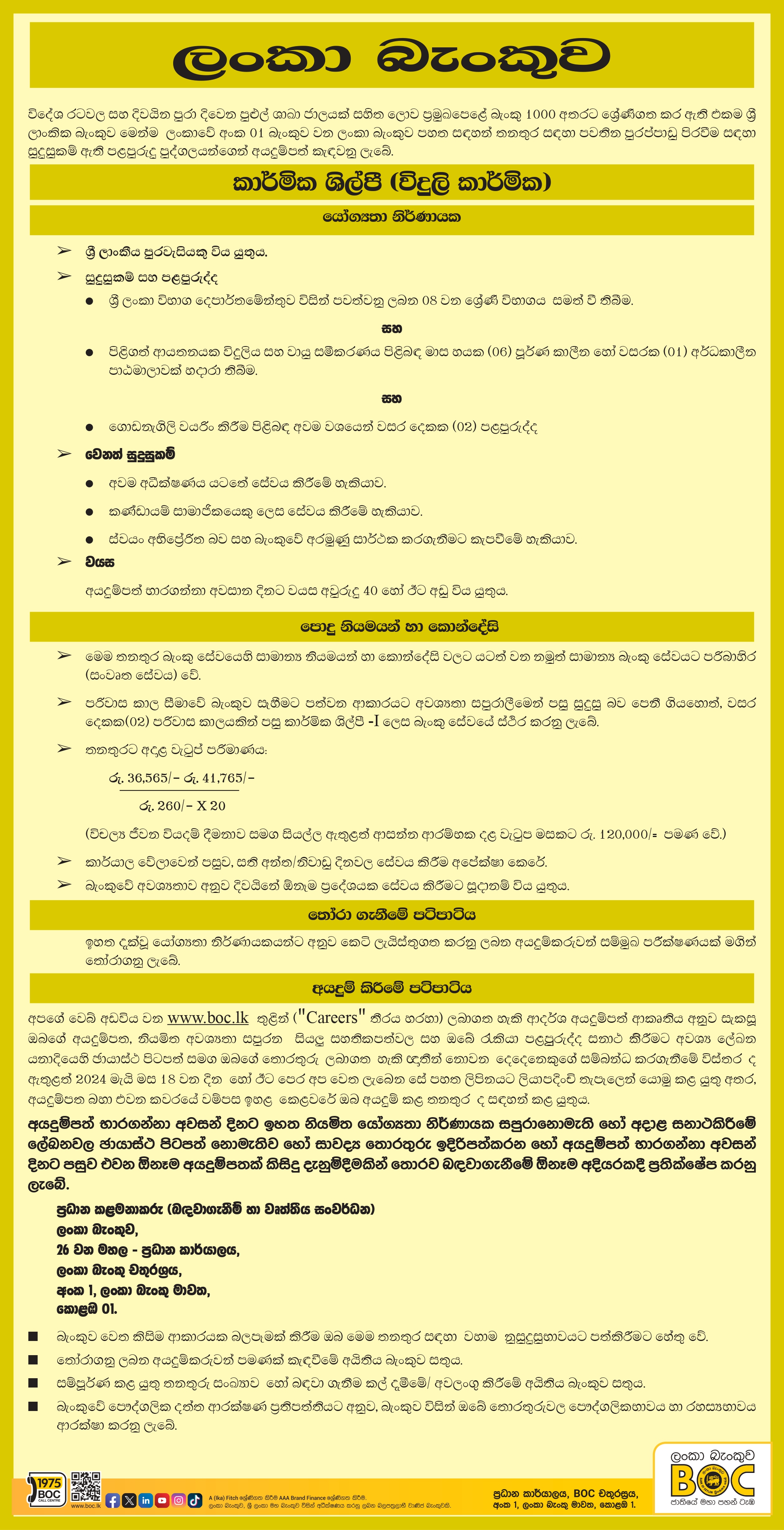 Technician - Bank of Ceylon
