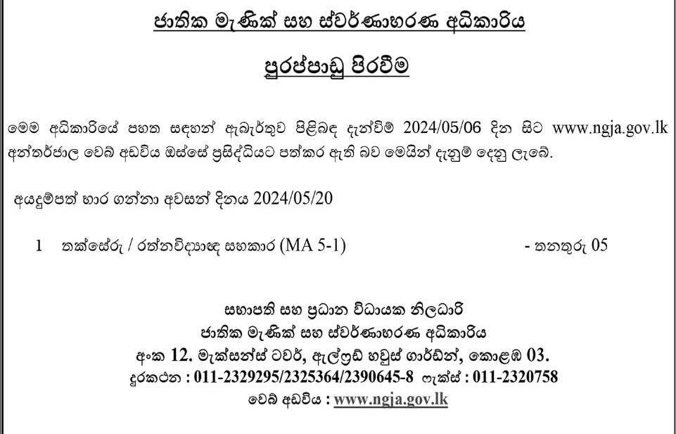 Valuer Gemologist Assistant - National Gem and Jewellery Authority