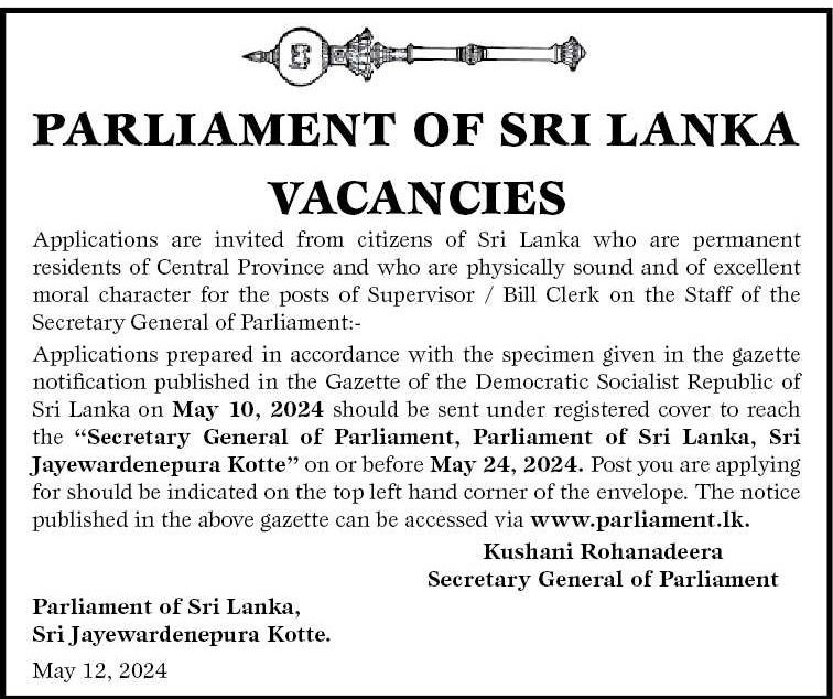 Supervisor, Bill Clerk - Parliament of Sri Lanka