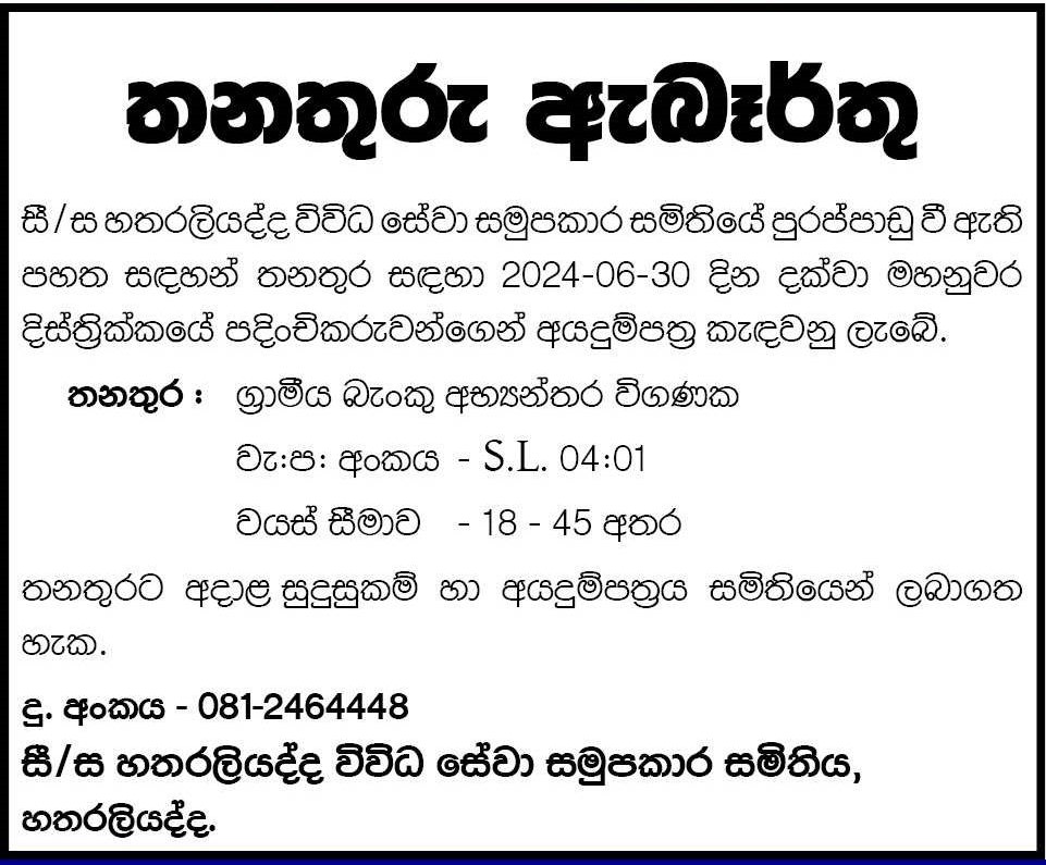 Internal Auditor - Hatharaliyadda Multi Purpose Cooperative Society Ltd