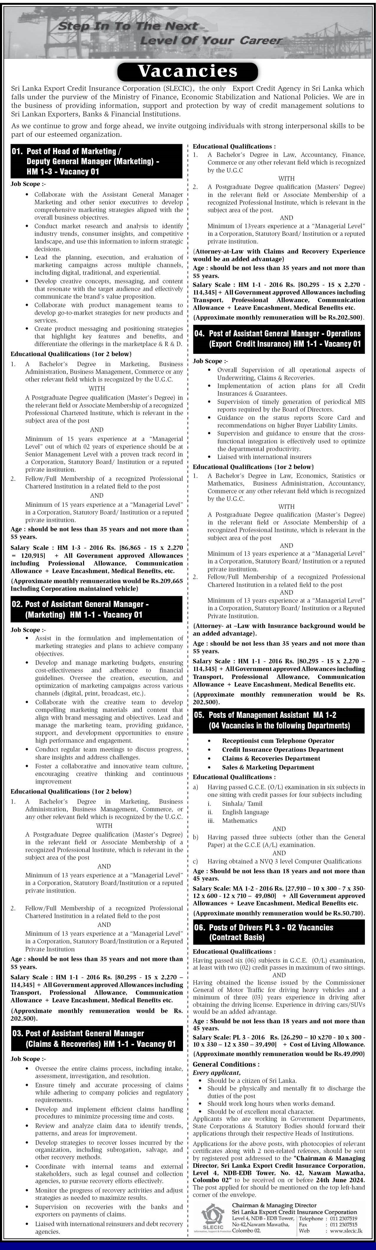 Head of Marketing, Assistant General Manager, Management Assistant - Sri Lanka Export Credit Insurance Corporation