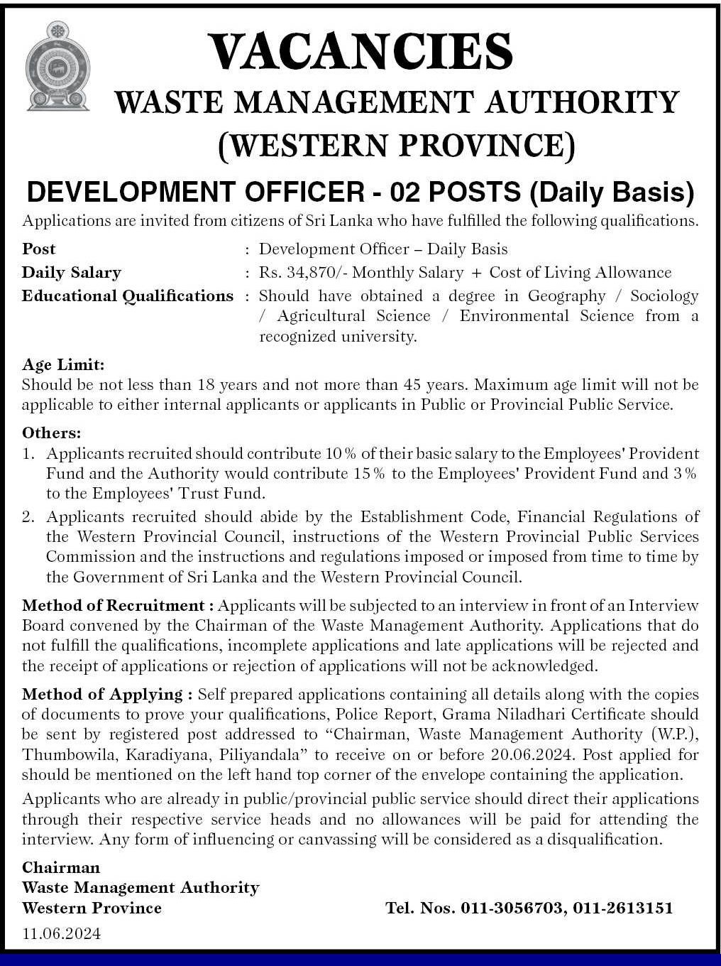 Development Officer - Waste Management Authority