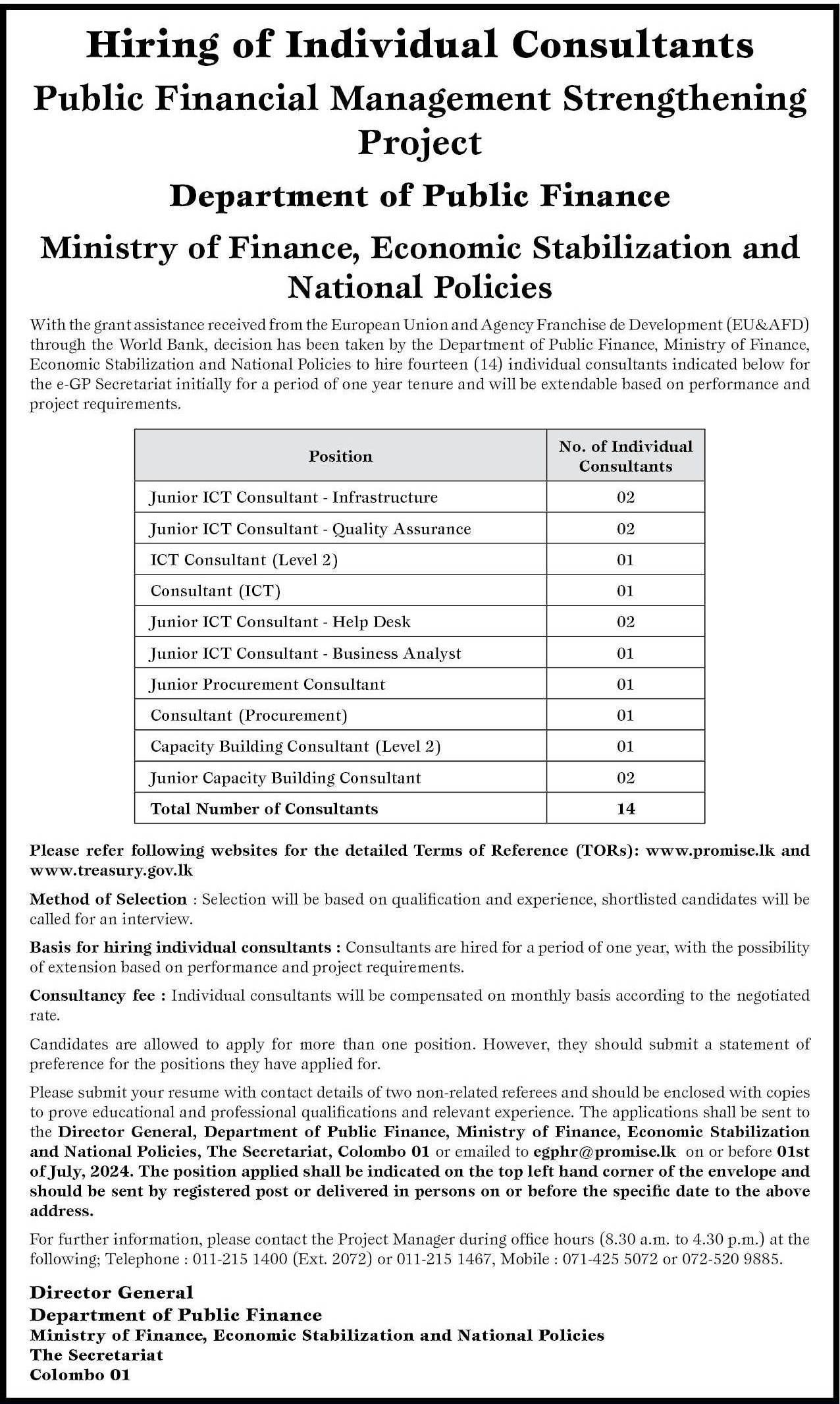 Junior ICT Consultant, Consultant - Ministry of Finance