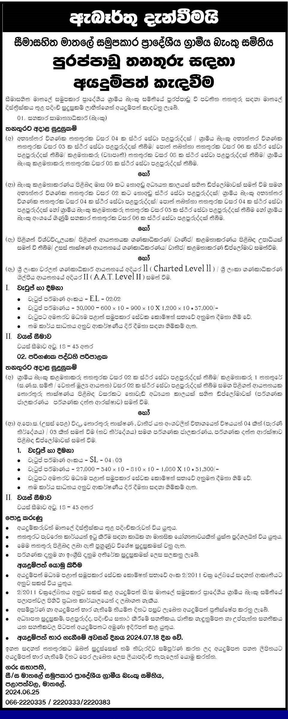 Assistant General Manager,Computer System Administrator - Matale Co-operative Regional Rural Bank Society Ltd