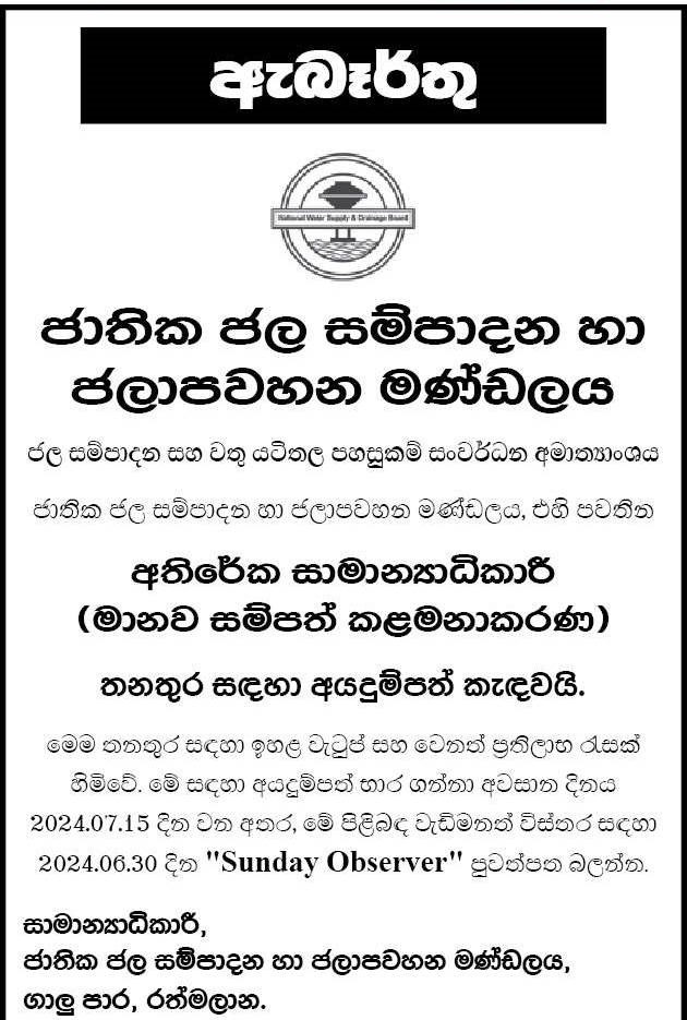 Additional General Manager - National Water Supply and Drainage Board