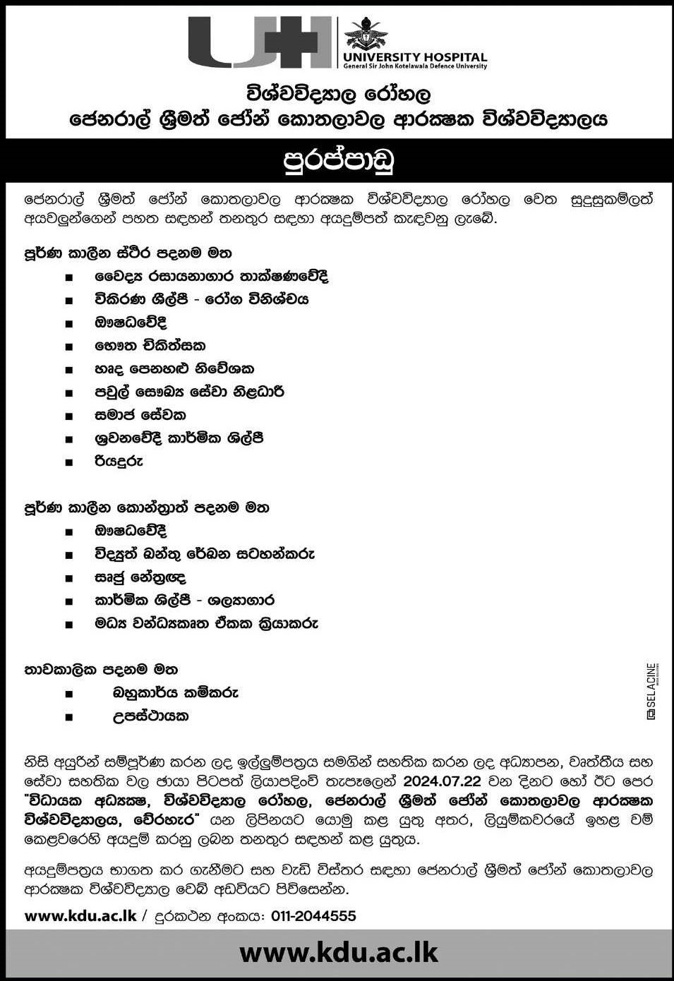 Medical Laboratory Technologist, Radiologist, Pharmacist - General Sir John Kotelawala Defence University Hospital