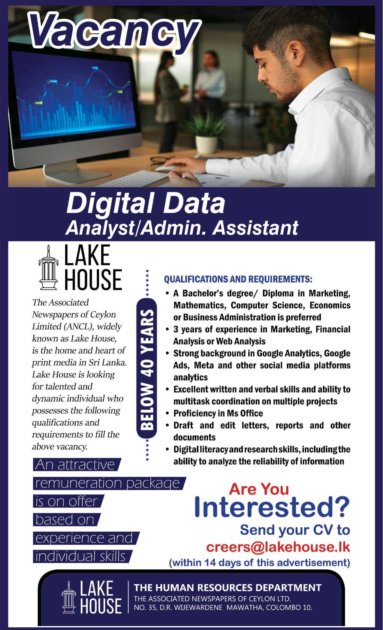Digital Data Analyst, Admin Assistant - Lake House