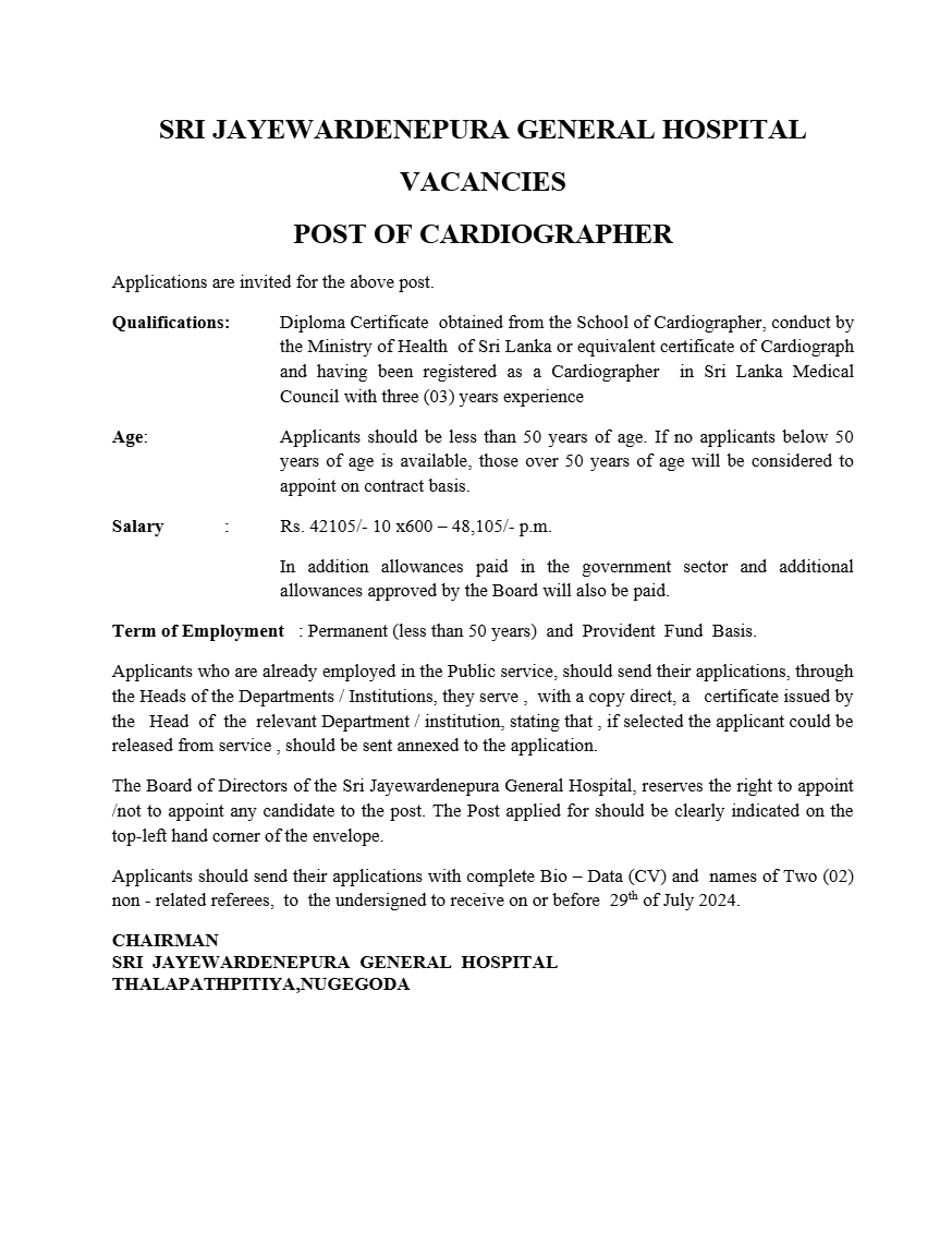 Cardiographer - Sri Jayewardenepura General Hospital