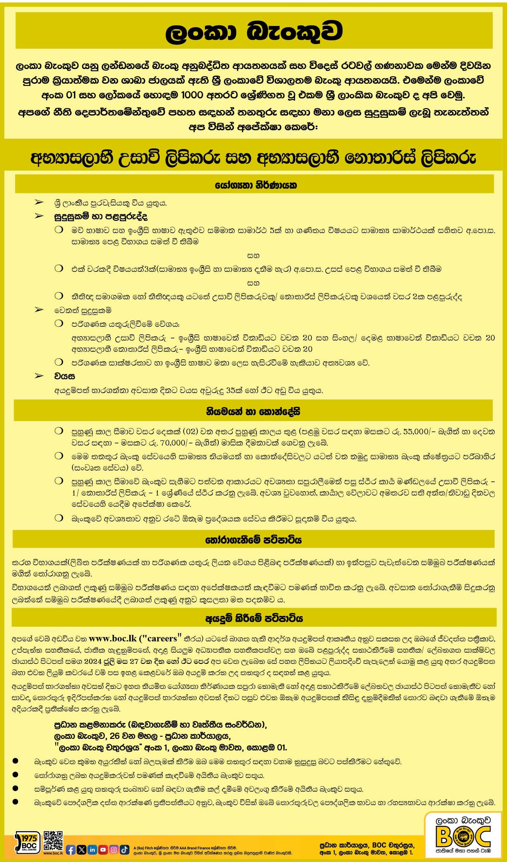 Trainee Court Clerk, Trainee Notary Clerk - Bank of Ceylon