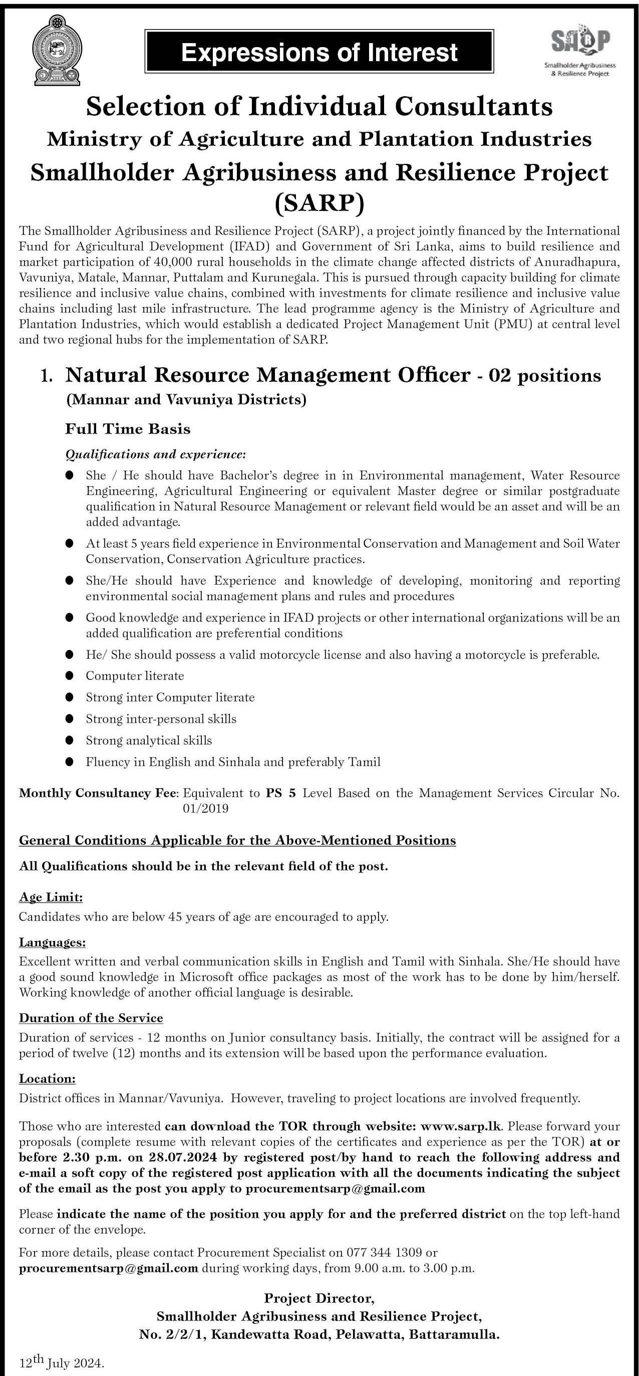 Natural Resource Management Officer - Ministry of Agriculture