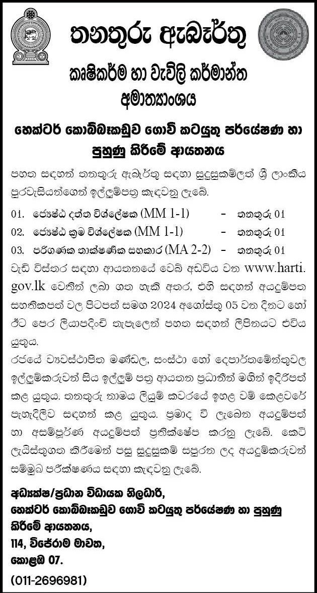 Senior Data Analyst, Senior Analyst Programmer - Ministry of Agriculture
