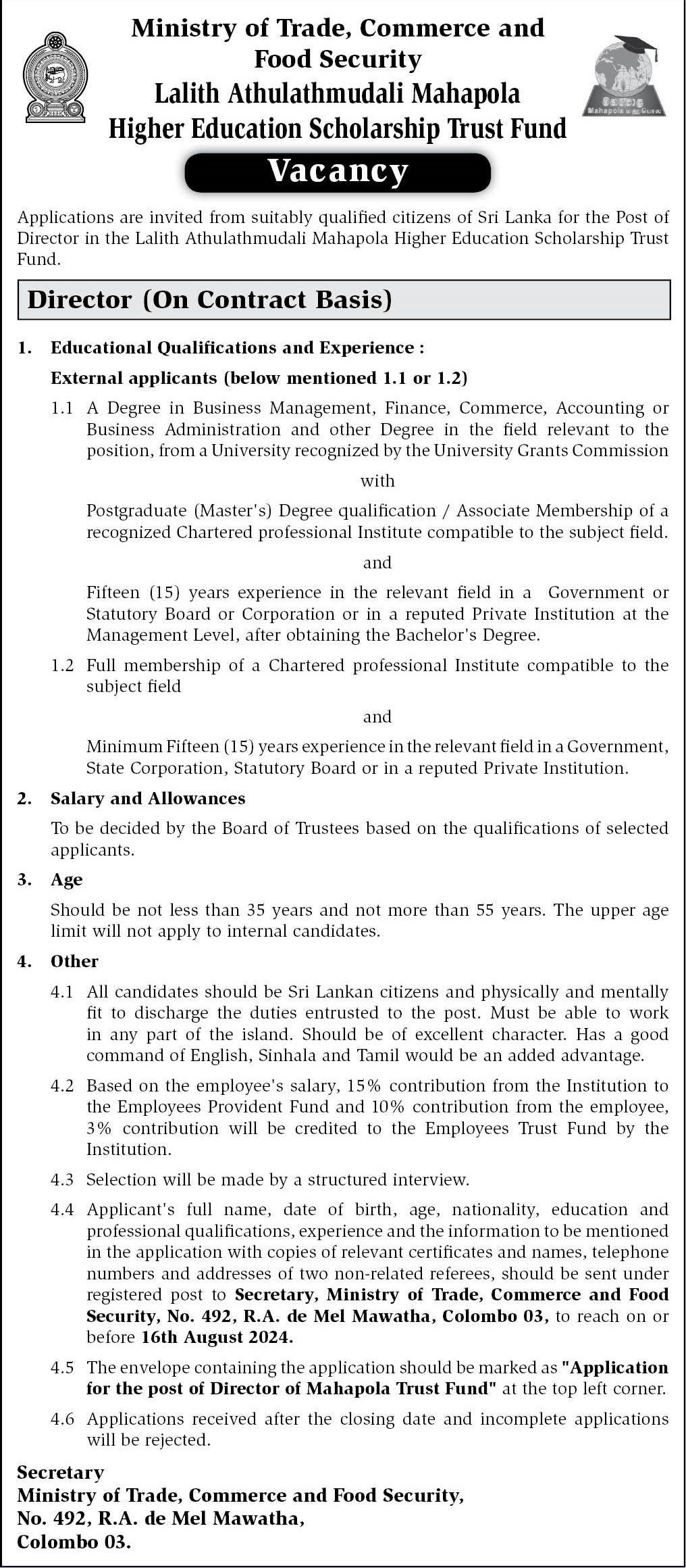 Director - Lalith Athulathmudali Mahapola Higher Education Scholarship Trust Fund