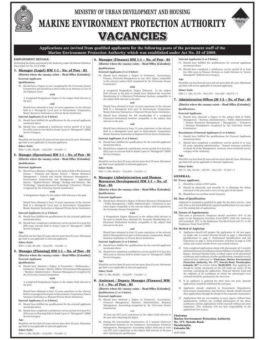 Manager, Deputy Manager, Administration Officer - Marine Environment Protection Authority