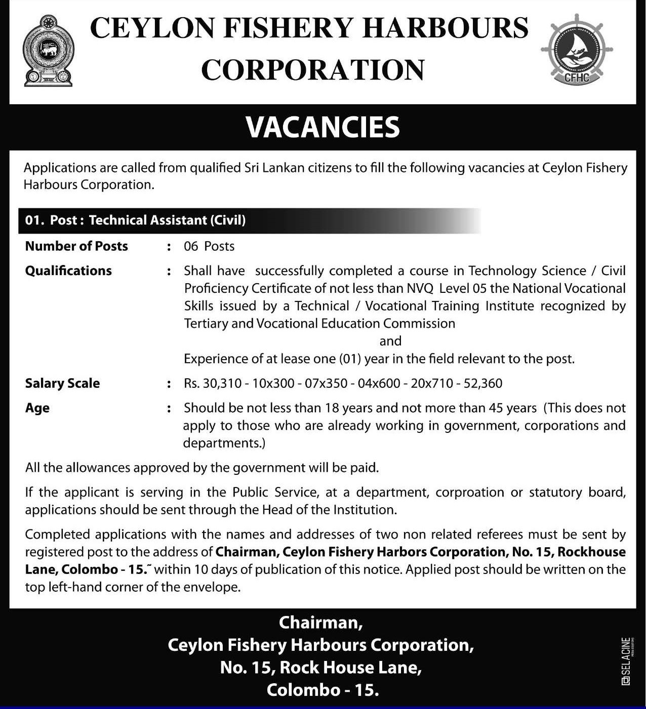 Technical Assistant - Ceylon Fishery Harbours Corporation