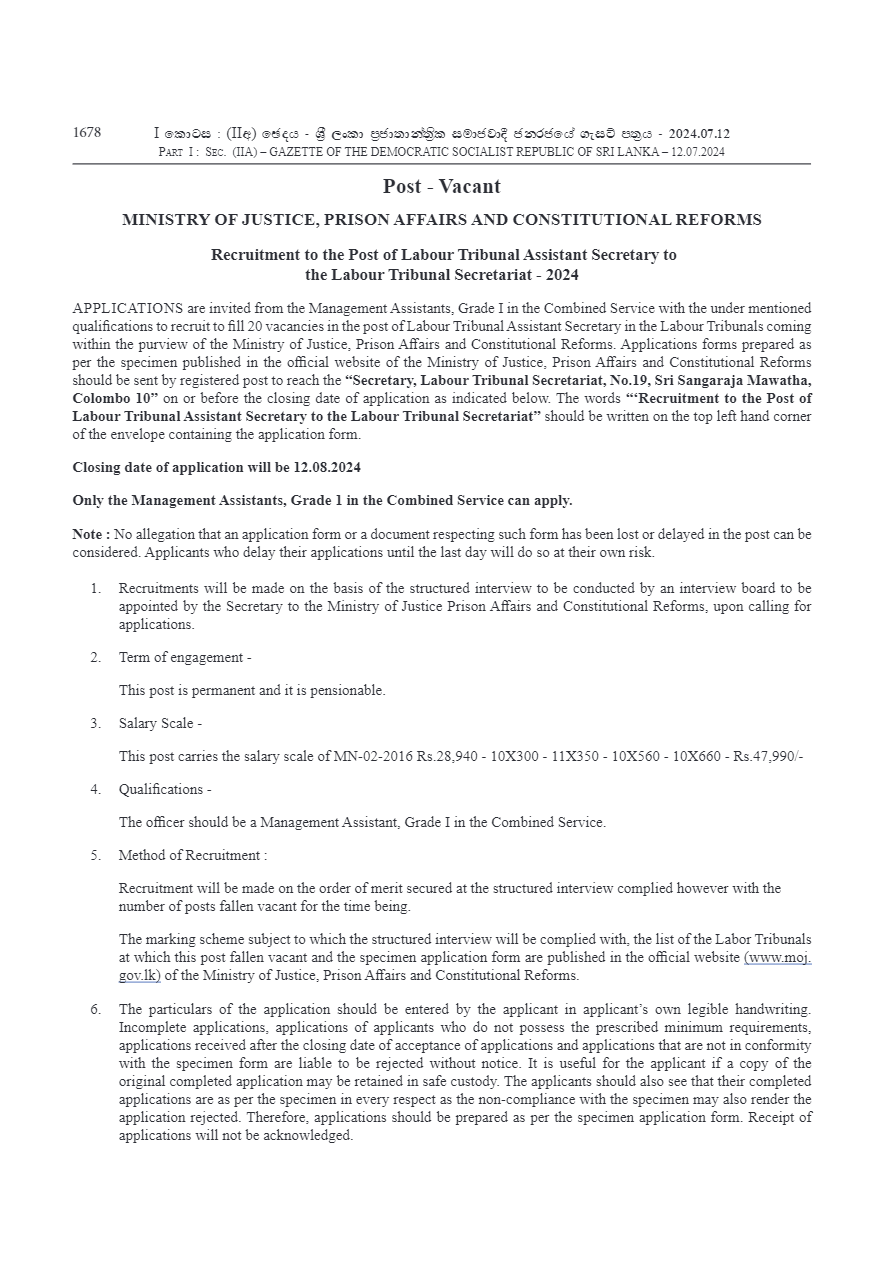 Labour Tribunals Assistant Secretary - Office of the Secretary Labour Tribunals
